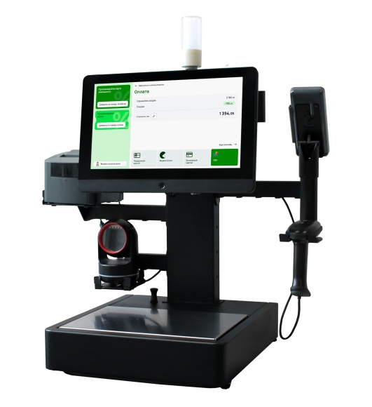 Модульная система в тонком корпусе с двумя экранами: вертикальным для покупателя и горизонтальным для кассира, подходит для любых форматов торговых сетей, в том числе для магазинов, требовательных к дизайну. Второй экран можно использовать как рекламную витрину. Устройство адаптируется под нестандартную мебель и оснащается такими опциями, как камера для распознавания товаров, фронтальная камера, сигнальный фонарь. К модели можно подключить весы, но важно заранее продумать, где они будут находиться и встроить их в мебель или сделать подставку сбоку от кассы.