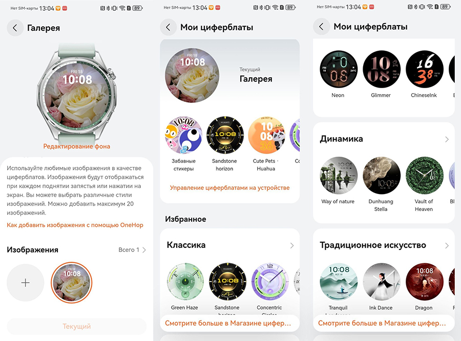 Можно сделать кадр на смартфон и через приложение HUAWEI health поставить на заставку циферблата.