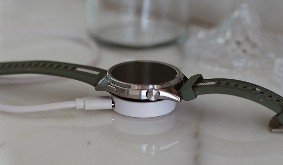 Основная разница между версиями — батарея. В версии 41 мм установлен аккумулятор на 540 мА/ч, а в версии 46 мм — 867 мА/ч. Заряжала устройство примерно раз в неделю, и это, пожалуй, одно из самых приятных отличий от конкурентов. Не нужно тревожиться о том, чтобы кабель был всегда под рукой. Просто кладешь их на магнитную подставку и через час-полтора они снова готовы к недельной работе.