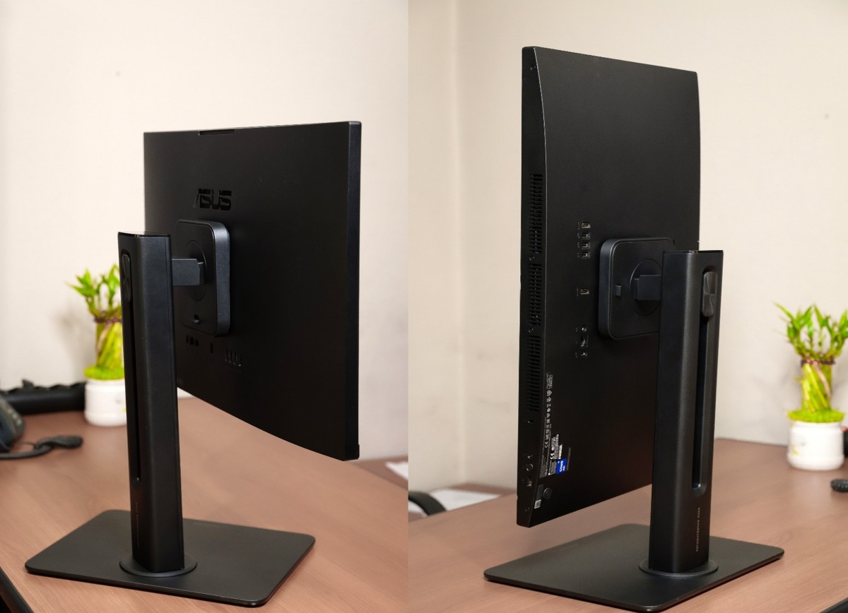 Когда работаешь за моноблоком, меньше всего хочется превращать стол в «выставку кабелей» или, наоборот, каждый раз мучительно нащупывать разъемы где-то в глубине корпуса. В ASUS поступили грамотно: продуманная встроенная система кабель-менеджмента позволяет спрятать все провода, оставляя рабочую зону безупречно чистой, а порты разделили на «быстрые» (под рукой) и «постоянные» (на задней панели).