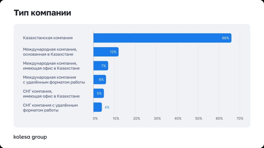 66% специалистов работают в казахстанских компаниях.