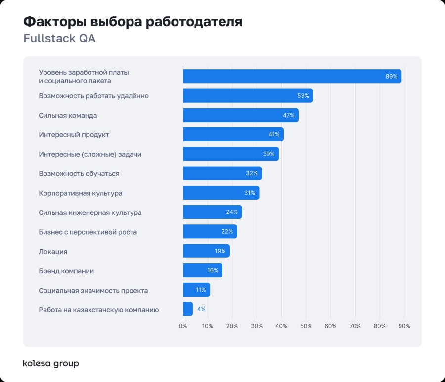 Kolesa Group провела новое исследование рынка IT-специалистов в Казахстане, чтобы понять, как меняется рынок, какие направления растут быстрее других и что сегодня важно разработчикам и QA-специалистам при выборе работодателя.