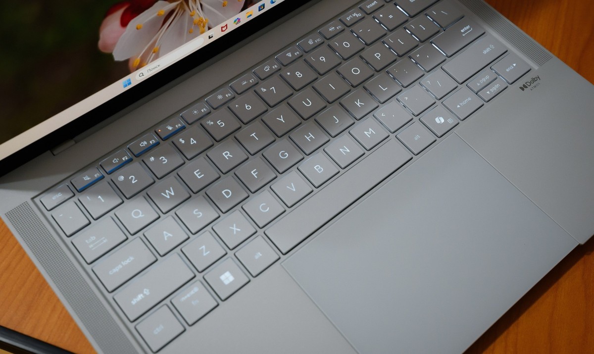 Идем дальше. Память — до 64 Гб супербыстрой LPDDR5X, SSD — до 2 Тб (M.2 2280 NVMe PCIe 4.0). Интерфейсы: 2 разъема Thunderbolt 4 USB-C с поддержкой монитора и быстрой зарядки (до 40 Гбит/с, DisplayPort и Power Delivery — до 60% за 40 мин), а также полноразмерные USB-A 3.2 и HDMI 2.1 (возможность подключения 2 дисплеев 4К одновременно). Слот расширения — 1x M.2 2280 PCIe 4,0×4. Камера: 1080p FHD (функция масштабирования изображений с помощью AI), есть ИК-подсветка для поддержки Windows Hello, упомянутая ранее шторка приватности. Звук: встроенный микрофонный массив, 6 спикеров (в т. ч. два двойных низкочастотных и 2 высокочастотных) плюс поддержка Dolby Atmos. Беспроводные интерфейсы: Wi-Fi 7 (802.11be), Bluetooth 6.0. Батарея — 70 Вт/ч.