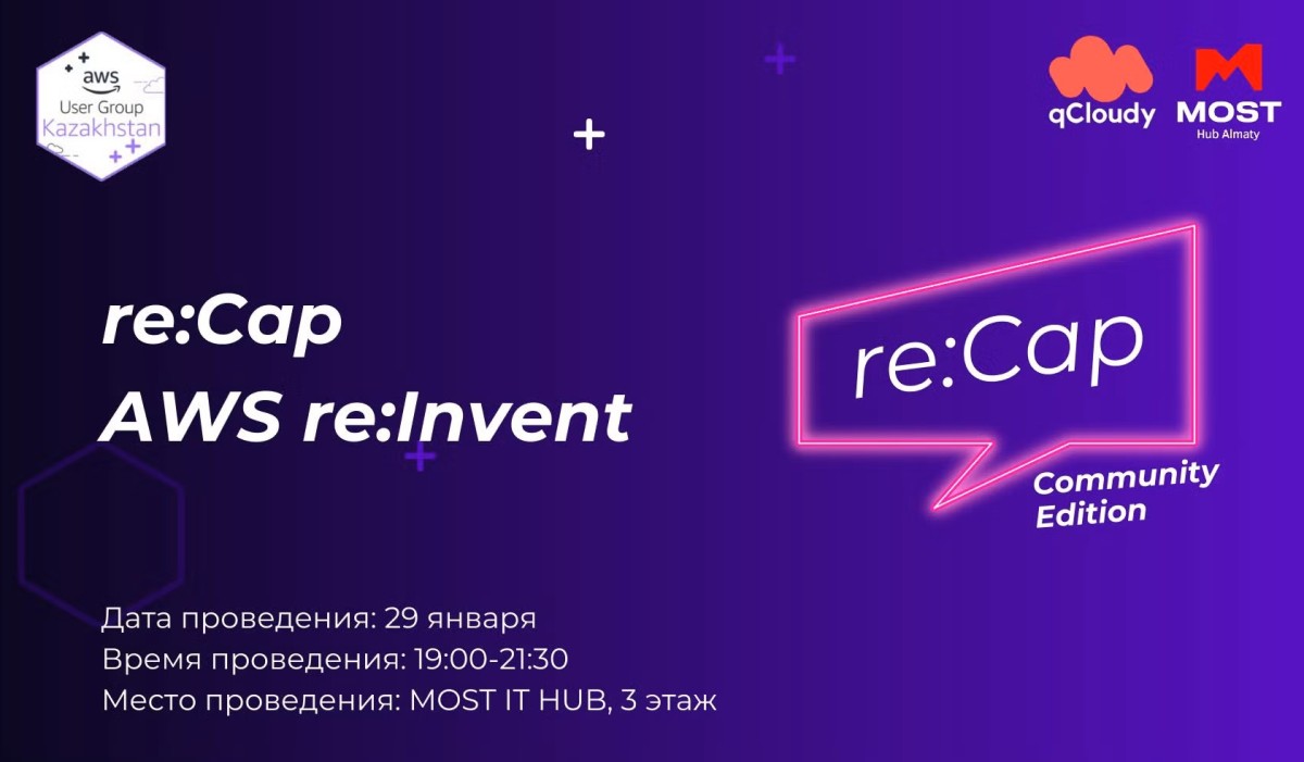 29 января qCloudy совместно с AWS User Group Almaty проведет re: Cap-встречу по итогам AWS re: Invent’25 — крупнейшей конференции Amazon Web Services. Мероприятие организовано qCloudy в партнерстве с MOST IT Hub при поддержке AWS User Group Almaty.