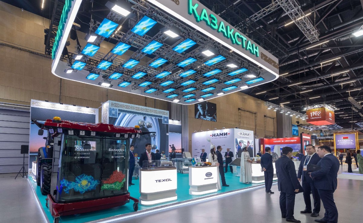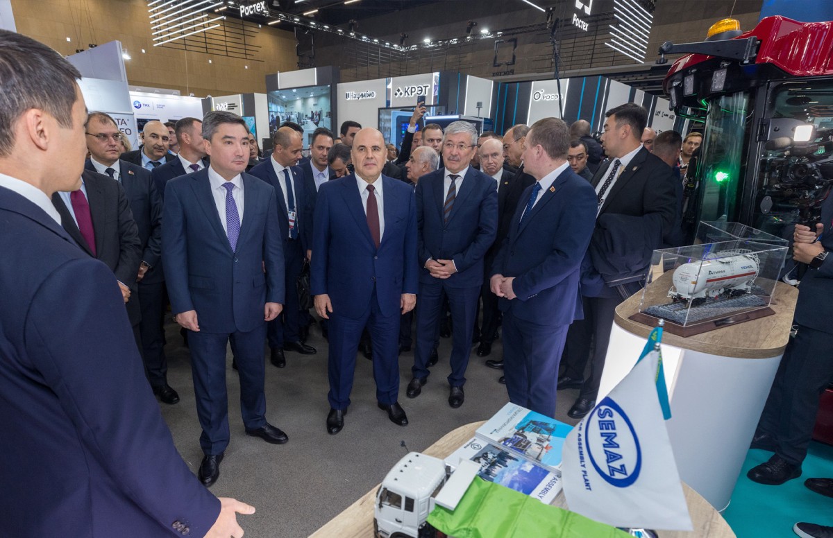 В ходе посещения выставки главы делегаций ознакомились с представленными изделиями, в том числе производимыми в Казахстане. Отечественный павильон включает продукцию 20 ведущих предприятий машиностроения, химической и строительной отраслей. Среди них — комбайны и тракторы с интегрированной системой точечного земледелия, кондиционирования и навигацией, аккумуляторы, железнодорожные комплектующие, стройматериалы и фосфорсодержащие удобрения. Также на экспозиции презентованы инновационные разработки казахстанских компаний и стартапы Назарбаев университета для цифровизации процессов, повышения безопасности на производстве и IT-решения в области медицины, образования, промышленности и др.