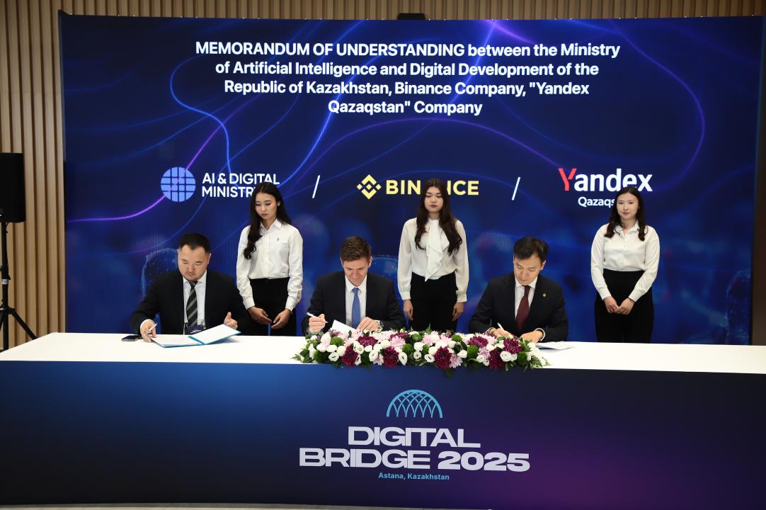 Министерство искусственного интеллекта и цифрового развития РК подписало меморандум с компаниями Binance и Yandex Qazaqstan. Это важный шаг в развитии цифровой экосистемы страны, который откроет новые возможности для интеграции инновационных технологий, развития криптовалютных решений и улучшения цифровых сервисов в Казахстане.