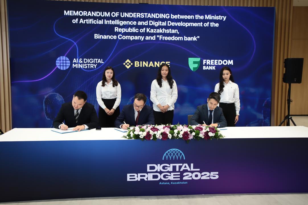 Министерство искусственного интеллекта и цифрового развития РК, компания «Binance» и АО «Фридом Банк Казахстан» подписали трехсторонний меморандум о сотрудничестве, направленный на развитие цифровых финансовых технологий и криптовалютных решений в Казахстане.