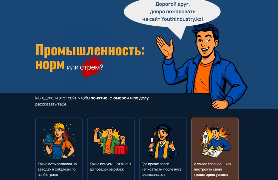 Представьте себе портал, где профессии энергетика, горняка или машиностроителя открываются с новой стороны — как драйвовые, современные и перспективные. Именно таким стал квиз-сайт YouthIndustry.kz, который сегодня запустили в Казахстане.