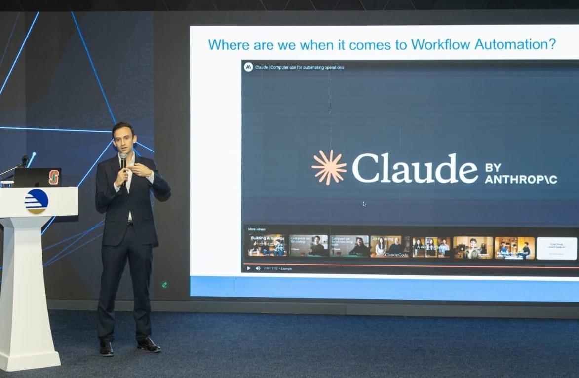 Лектором выступил доктор наук Стэнфордского университета, известный эксперт в области глобальных образовательных преобразований и технологий искусственного интеллекта Юнес Бенсуда Мурри. Он преподает на международной платформе Coursera, где обучил более 1,2 млн студентов дисциплинам, связанным с обработкой естественного языка, нейросетями и машинным обучением. Юнес также руководит компанией LiveTech.AI, создающей инновационные решения на основе искусственного интеллекта для сферы образования. В 22 года он стал одним из самых молодых преподавателей компьютерных наук в Стэнфордском университете.